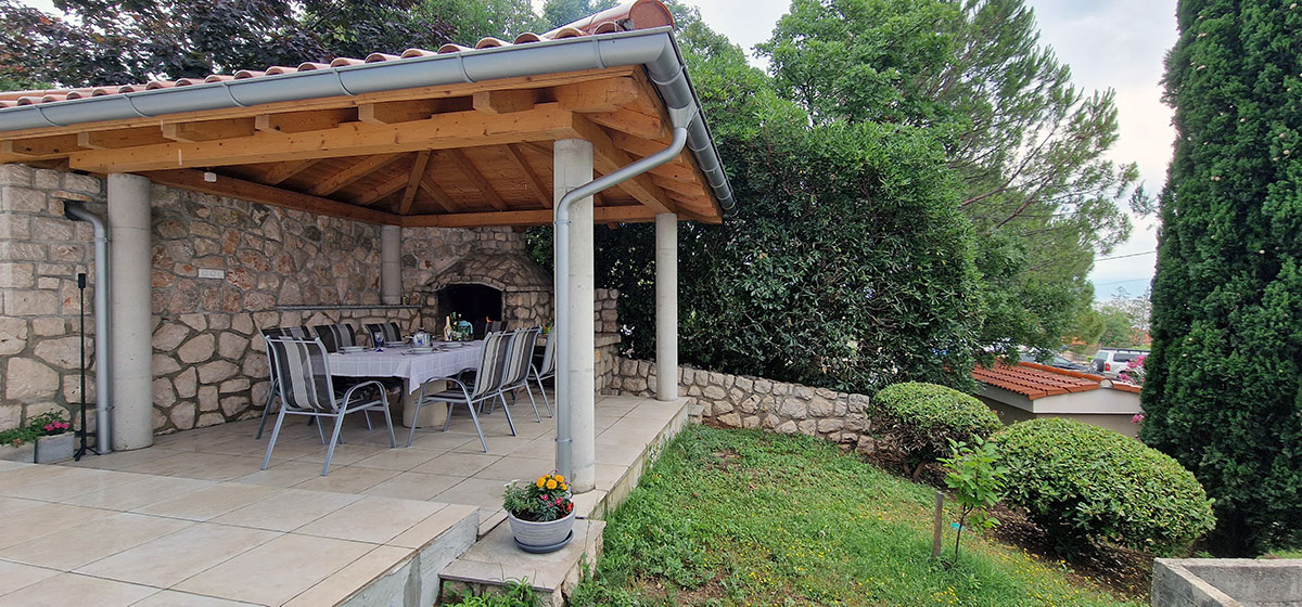 Our apartment has small garden with patio (gazebo). In patio there is a barbecue area with large table and eight chairs.